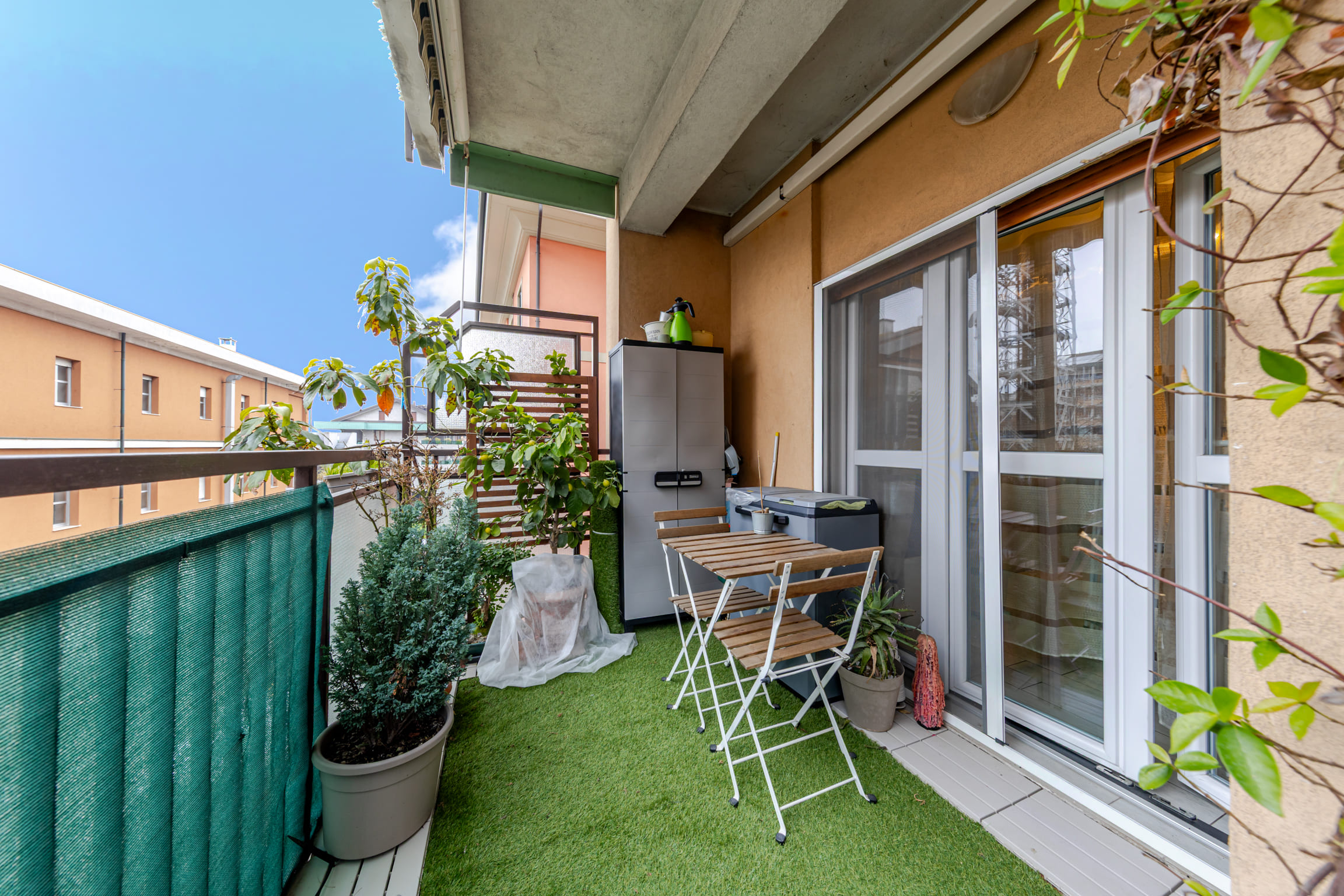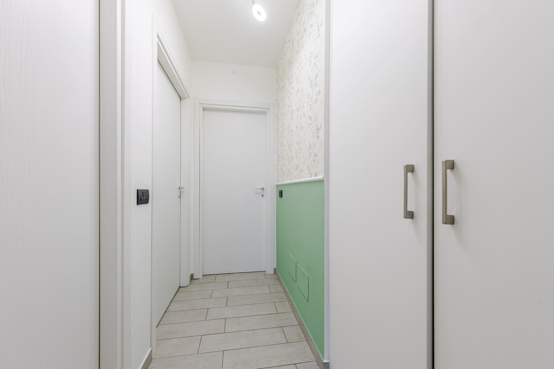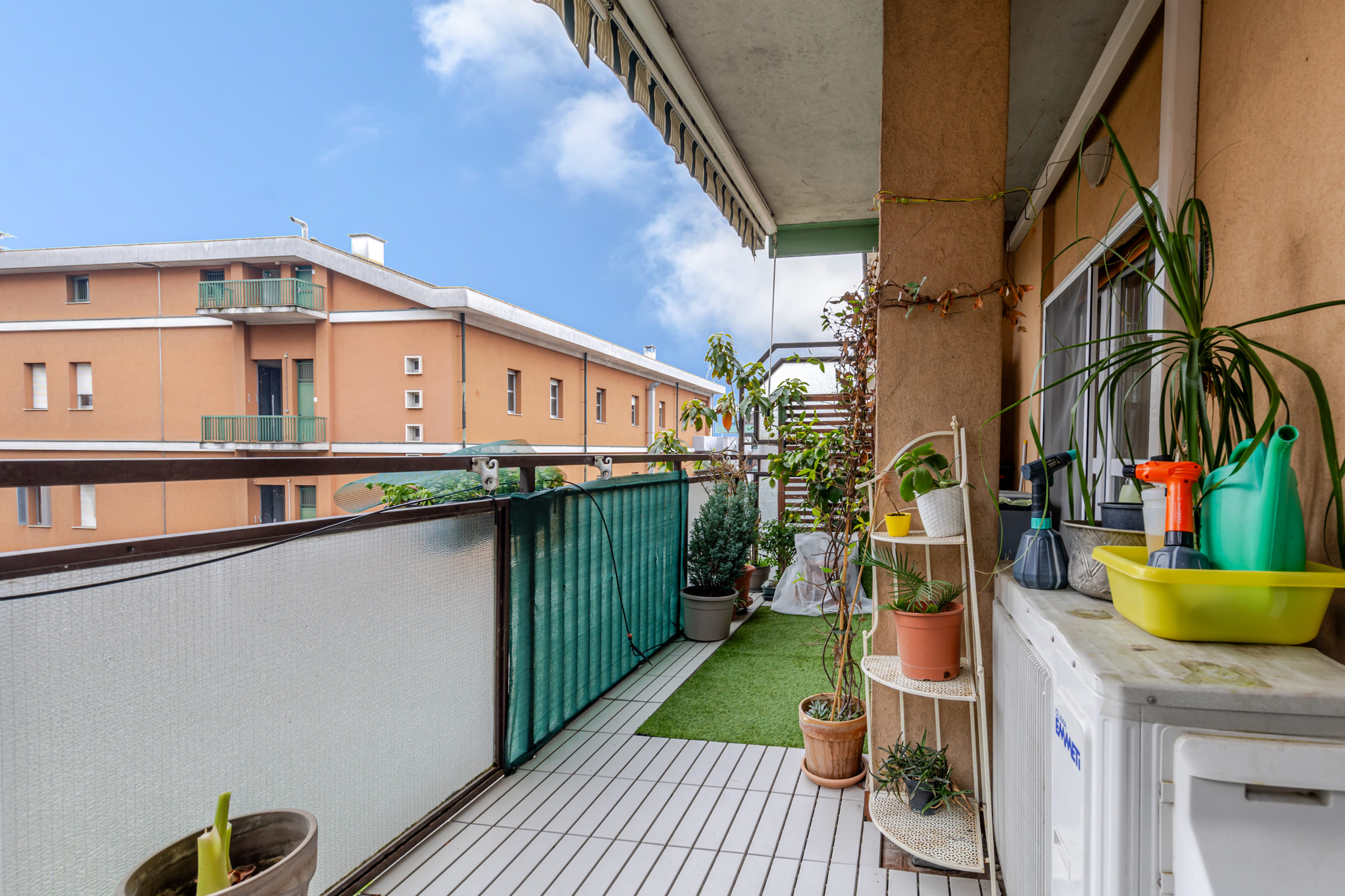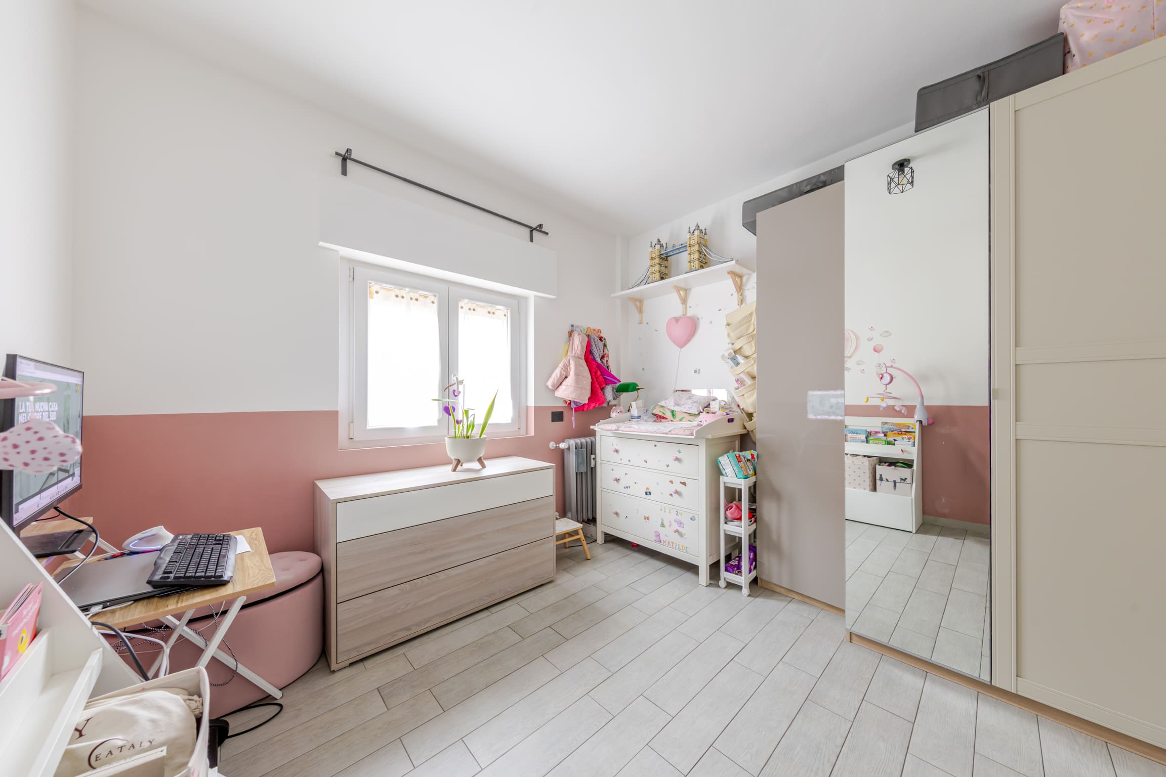 ingresso su luminoso soggiorno con cucina open space e doppio accesso al terrazzo, disimpegno, bagno finestrato, cameretta, camera matrimoniale e comoda zona lavanderia.