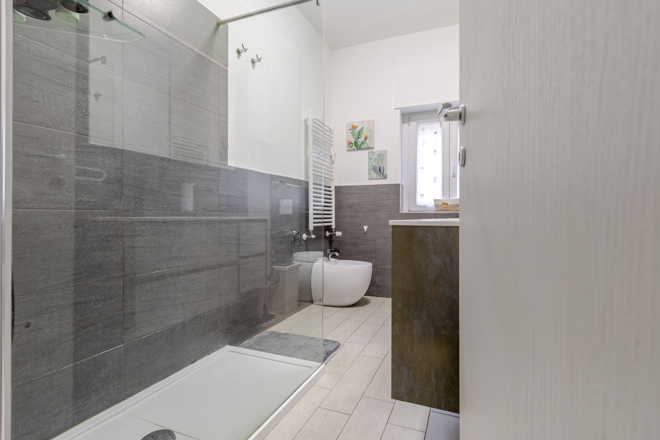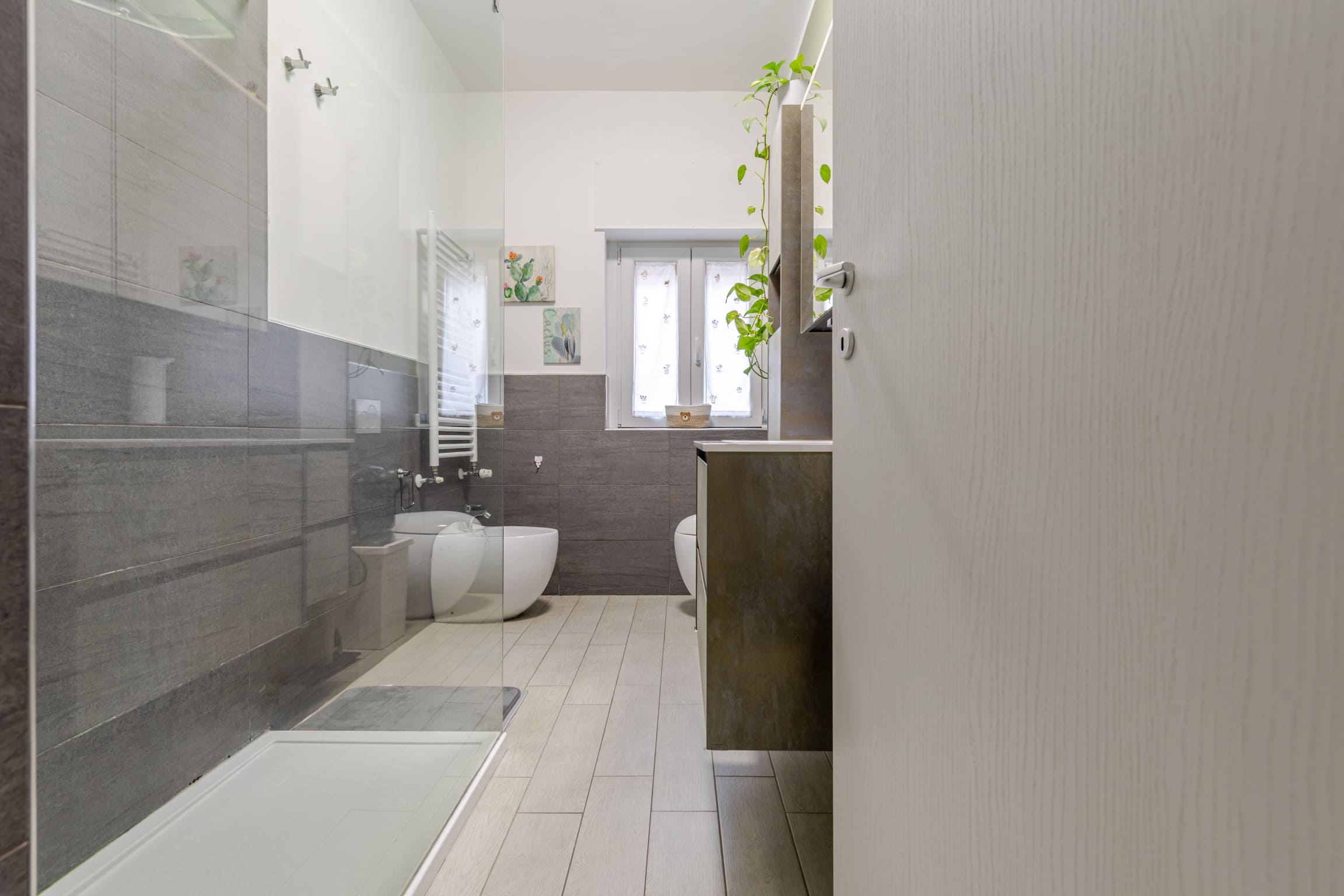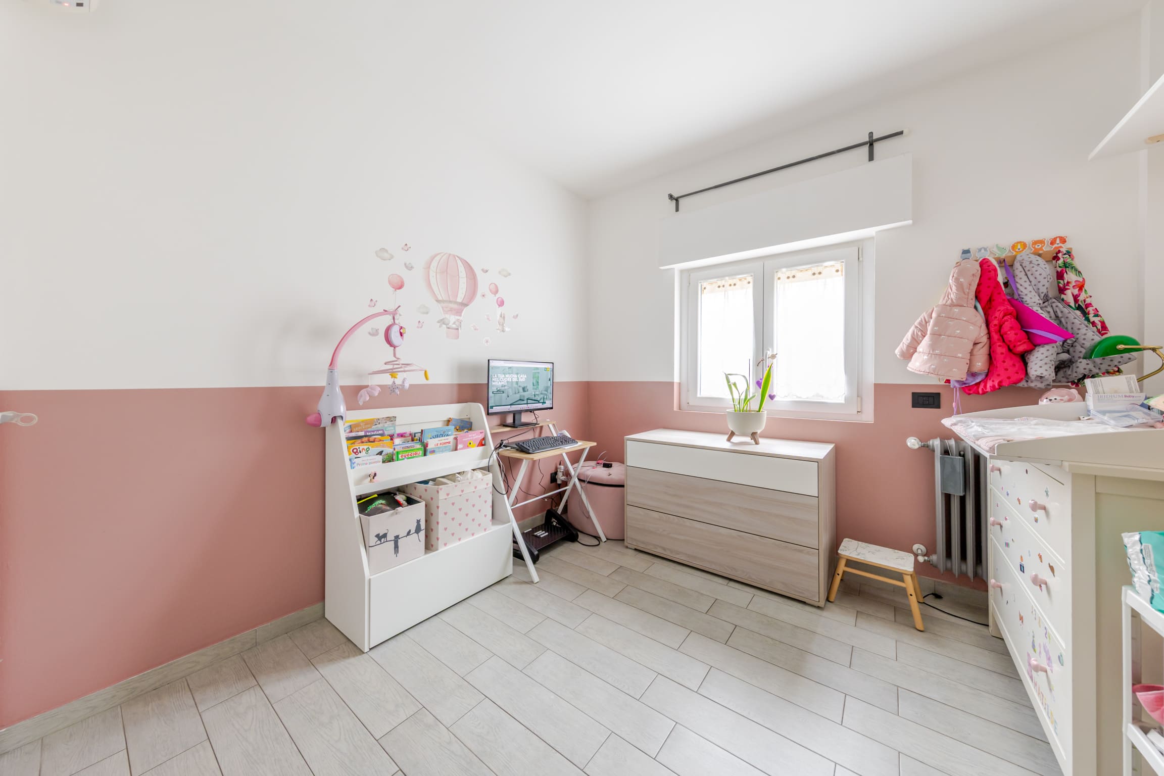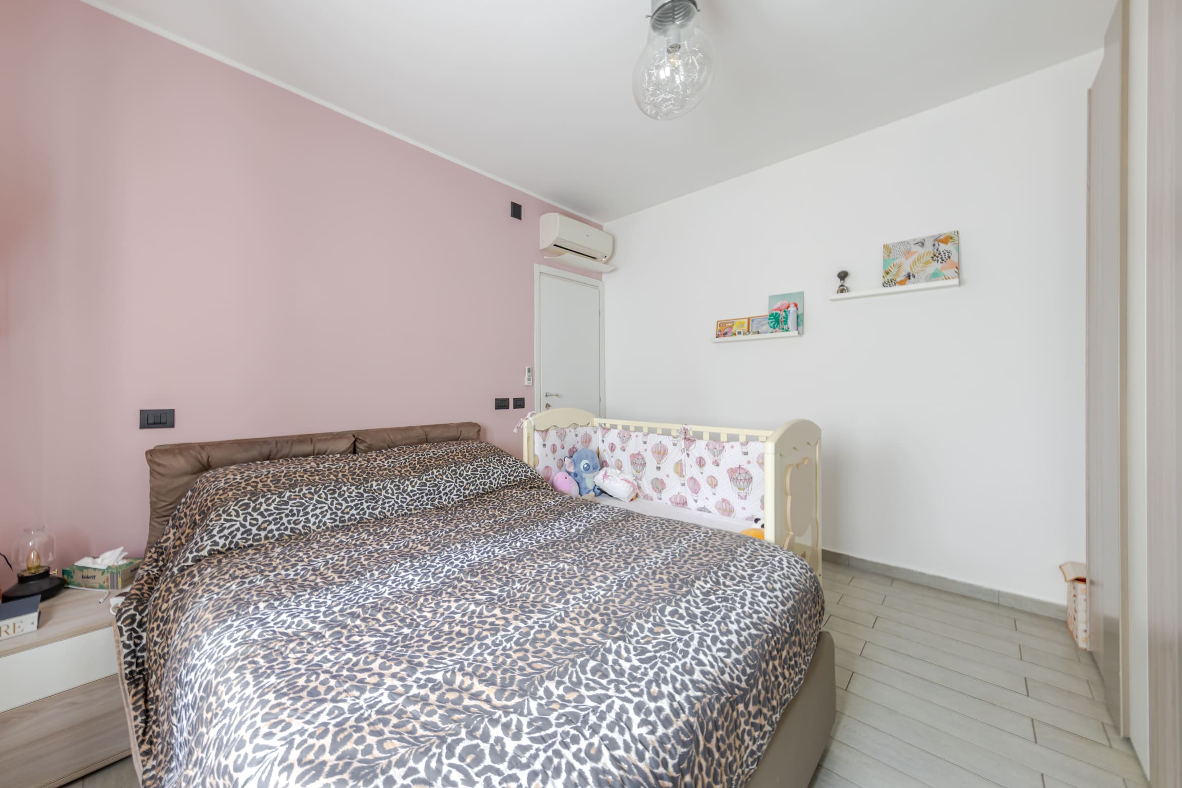 ingresso su luminoso soggiorno con cucina open space e doppio accesso al terrazzo, disimpegno, bagno finestrato, cameretta, camera matrimoniale e comoda zona lavanderia.